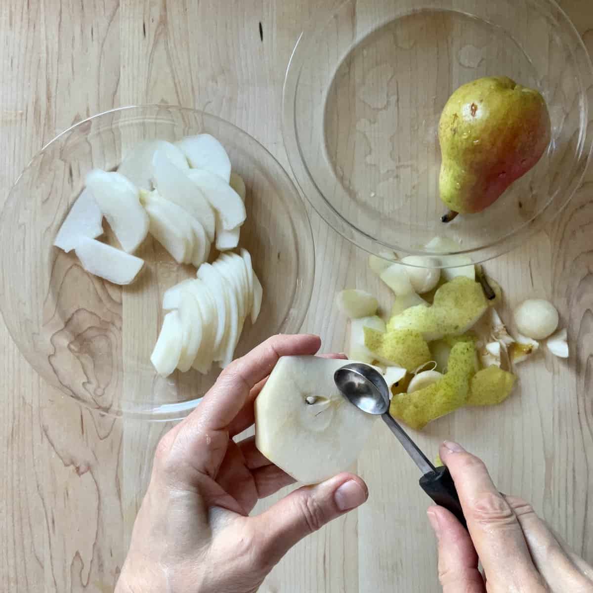 - 2 pears fresh, peeled, cored and sliced ⅛-inch